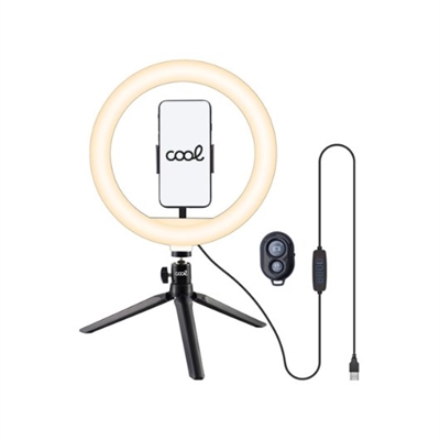 SOPORTE ARO LUZ LED COOL MANDO BLUETOOTH 50CM ARO 10 DIAMETRO 25CM 3 NIVEL LUZ LED 2M CABLE 12W