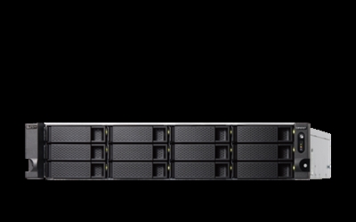 QNAP TS-H1886XU-RP-R2. Tipos de unidades de almacenamiento admitidas: HDD & SSD, Interfaces de disco de almacenamiento soportados: Serial ATA II, Serial ATA III, Tamaños de almacenamiento en disco soportados: 2.5,3.5". Familia de procesador: Intel® Xeon® D, Fabricante de procesador: Intel, Modelo del procesador: D-1622. Memoria interna: 32 GB, Tipo de memoria interna: DDR4, RAM máximo soportado: 128 GB. Ethernet LAN, velocidad de transferencia de datos: 100,1000,2500 Mbit/s, Protocolos de red compatibles: IPv4, IPv6, SSH, Telnet, HTTP(S), FTP, CIFS/SMB, AFP. Conector fibra óptica: SFP+